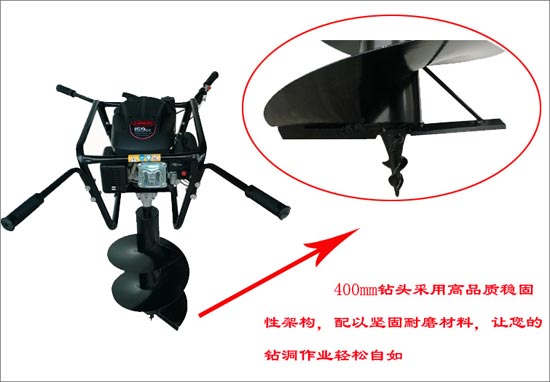 產(chǎn)品特點:采用四沖程159CC大馬力發(fā)動機,適合長時間大量工作,帶400MM鉆頭使用。其他型號小鉆頭都可以用。